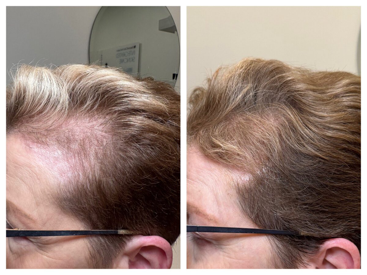 “The TED hair treatment system is a non-invasive, needle-free option that uses sound waves and air pressure to deliver peptides and nutrients directly to the hair follicles and scalp,” says Lehr-Hawkins. “There’s no downtime or discomfort, and it can greatly reduce hair loss and shedding.”