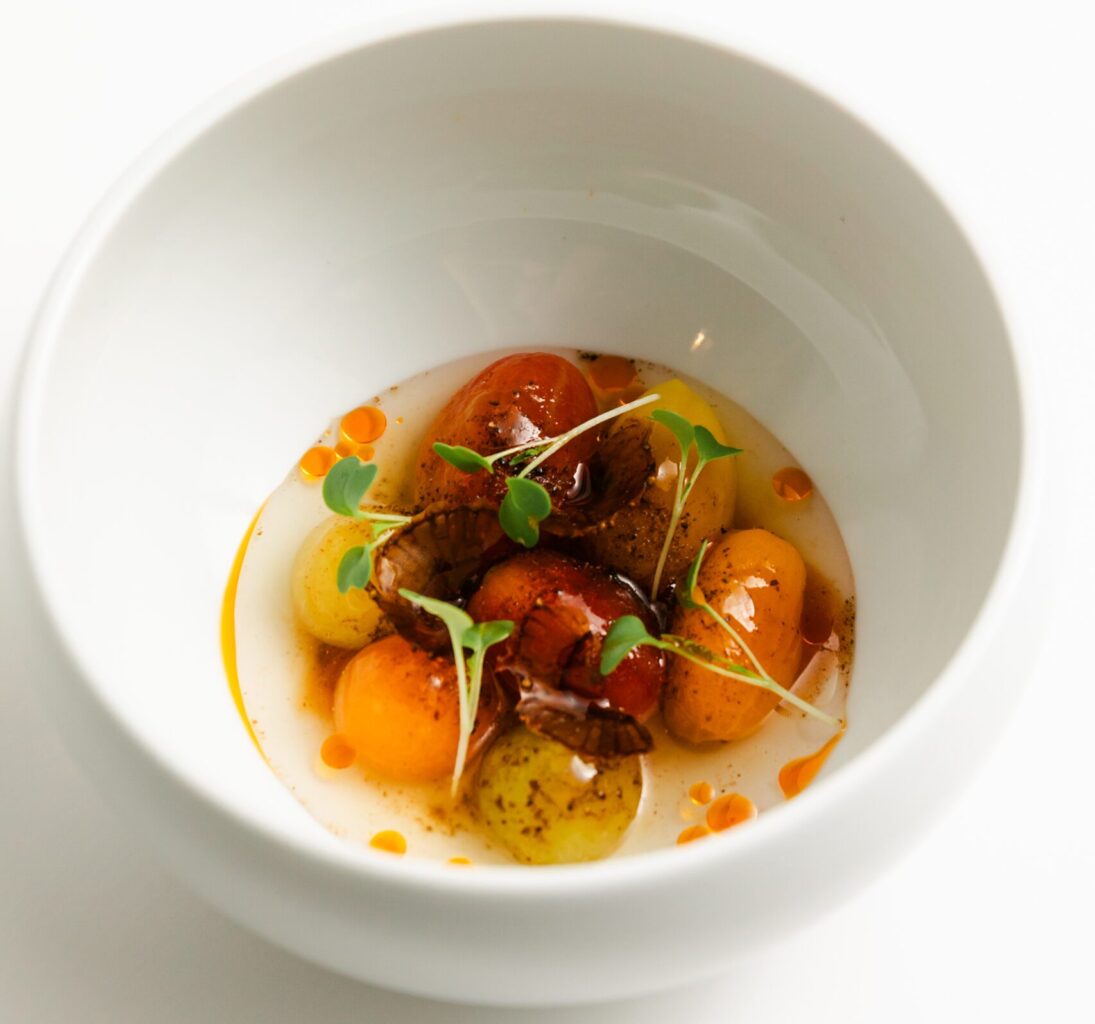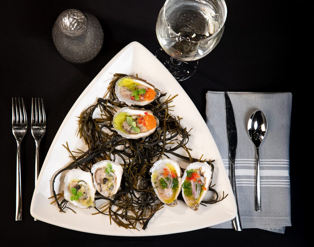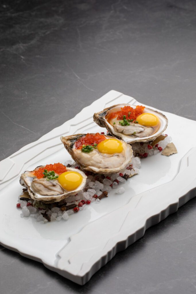 Featured photo caption: At the Summit Club, diners can enjoy delicacies from chef Bill Lyle, including a Japanese oyster shooter with quail egg, tobiko, sake and shoyu glaze. Photo by Brent Fuchs