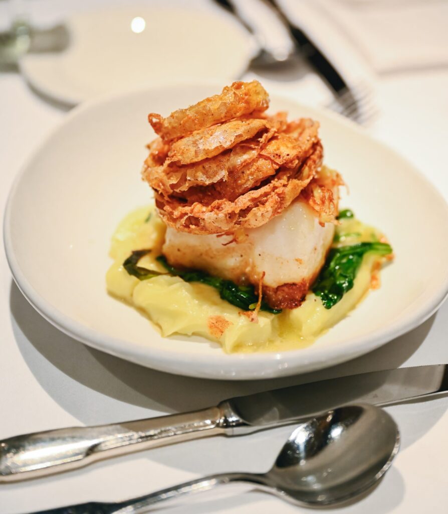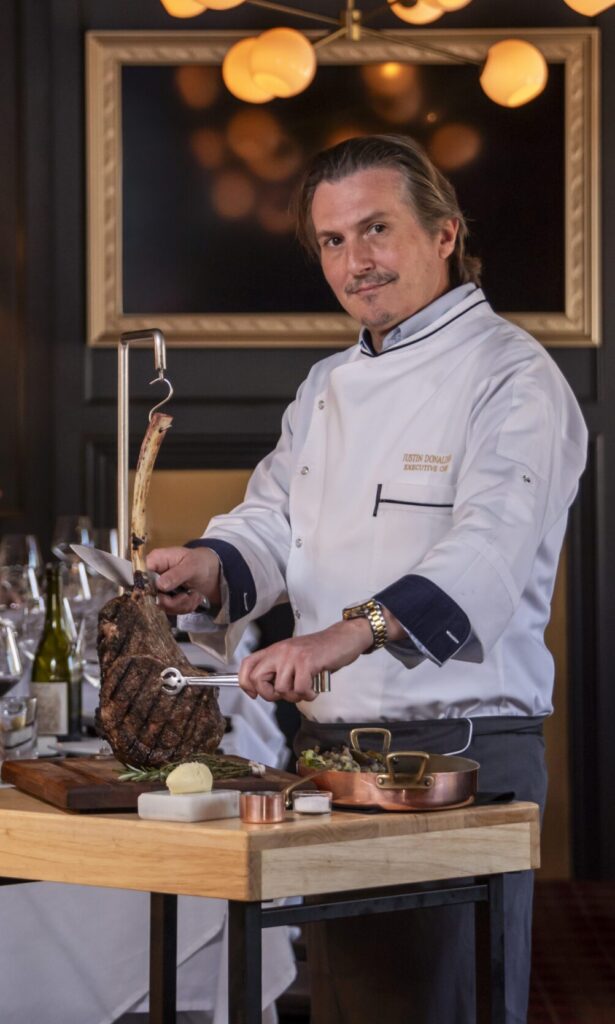 In opulent ambiance comes exquisitely plated entrees that are some of the finest in the land. Chef Justin Donaldson, who once worked with legendary chef Gray Kunz in NYC, offers treats such as foie gras lollipops, a lamb rack cooked to perfection with an elegant French sauce, and Cornish hen roulade with beurre rouge. If you’re famished, there’s always that huge tomahawk ribeye, carved tableside.