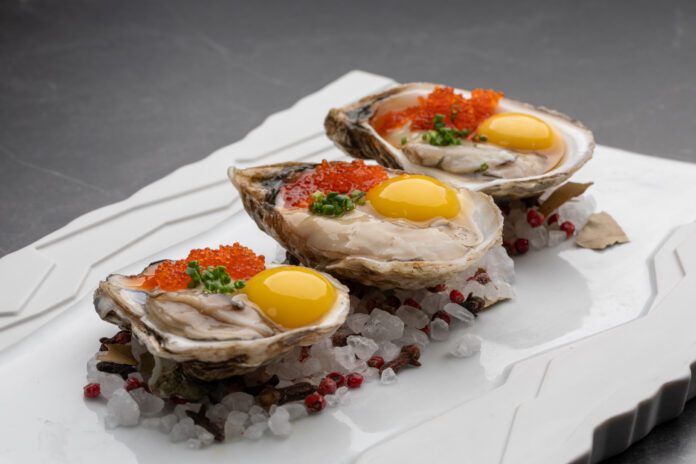 Featured photo caption: At the Summit Club, diners can enjoy delicacies from chef Bill Lyle, including a Japanese oyster shooter with quail egg, tobiko, sake and shoyu glaze. Photo by Brent Fuchs
