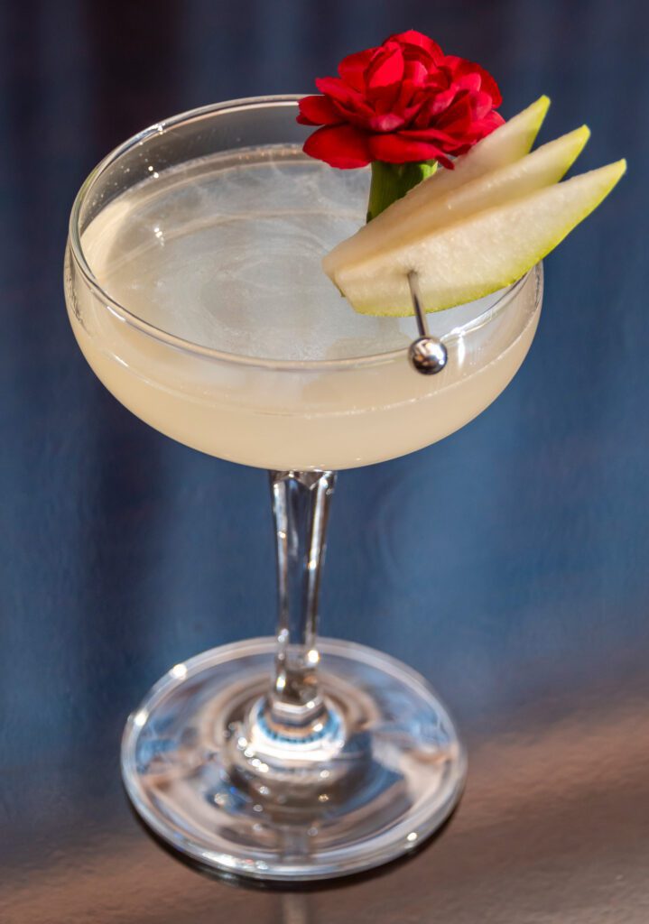 Vodka, Kikusui ‘Junmai Ginjo’ sake, Domaine de Canton, carmelized red pear shrub, lemon