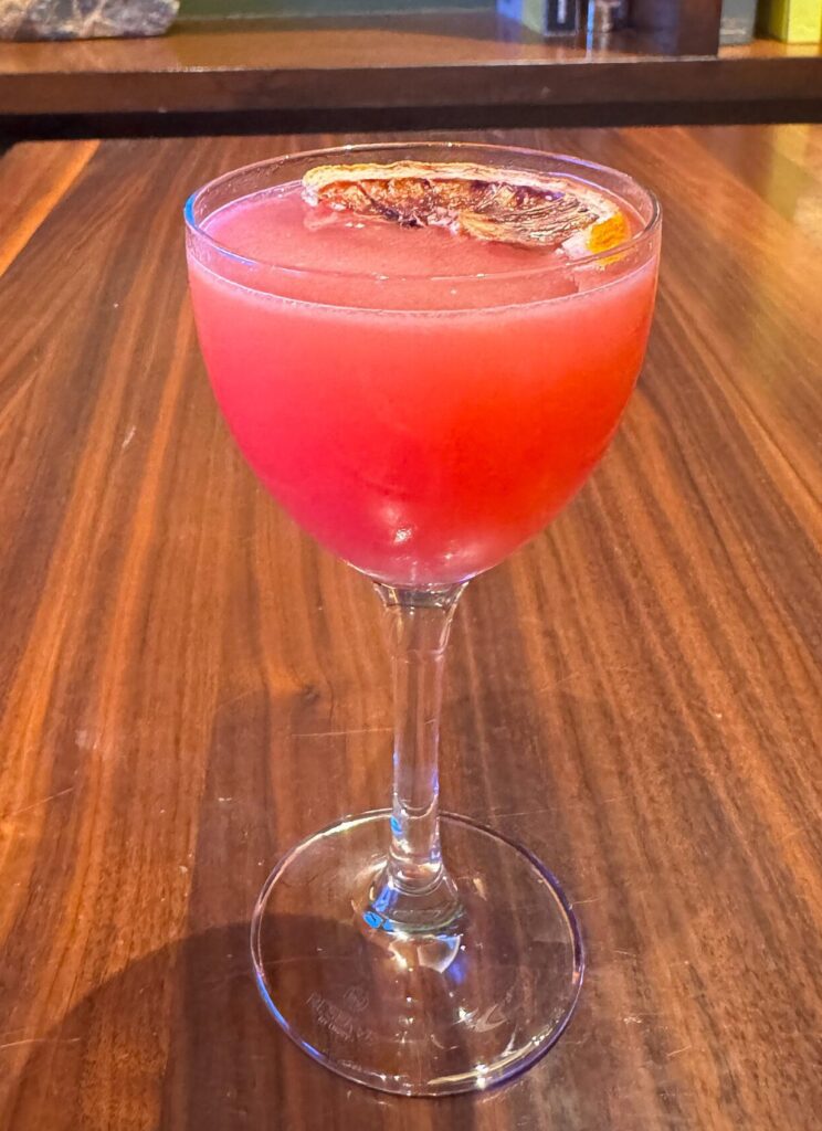 Anteel Blood Orange tequila, house made blood orange cordial, lime juice, Jamaican No. 2 bitters