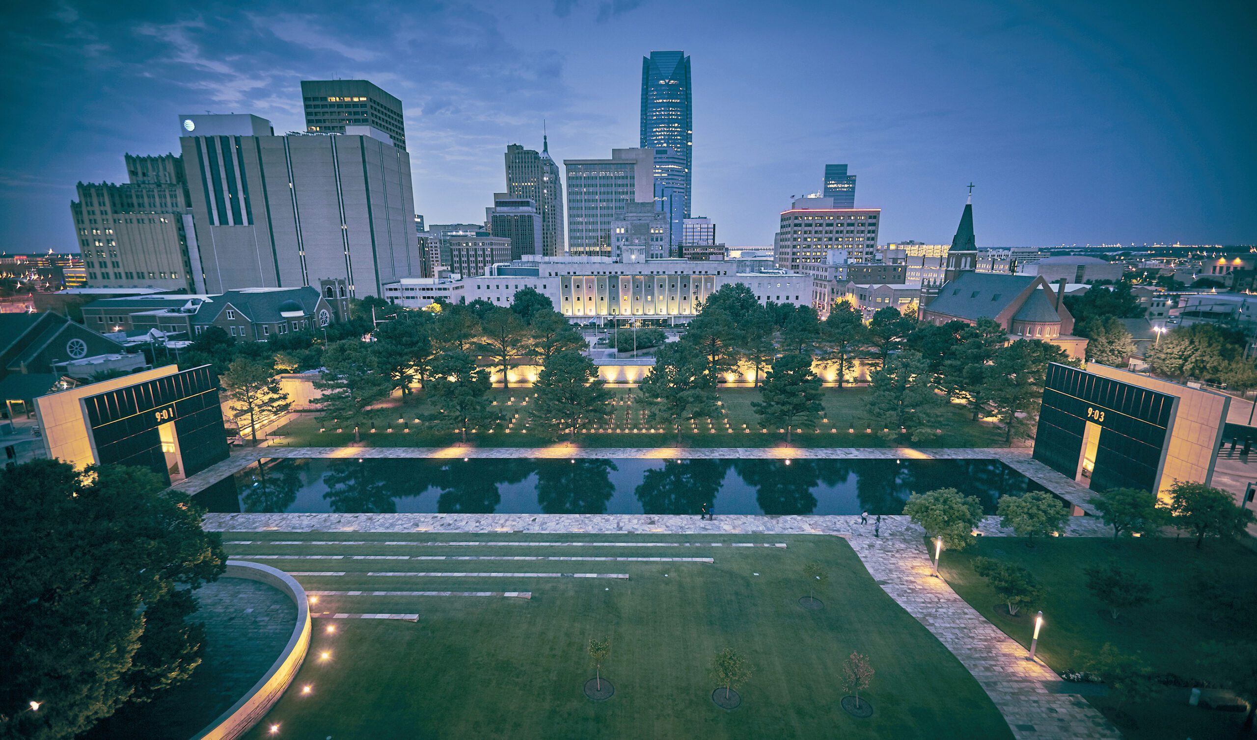 An aerial view showcases the entire outdoor memorial in OKC. Photos courtesy the Oklahoma City National Memorial and Museum