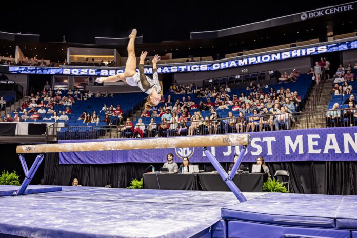 The SEC Gymnastics championships in Tulsa draw thousands of athletes and fans, generating significant economic impact for the city through hotel stays, dining and local spending. Photos by Phil Clarkin
