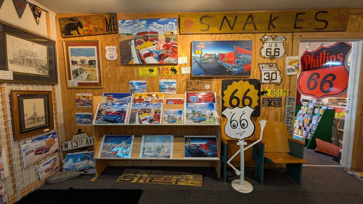 “They have the original Route 66 Bowl Neon Sign from OKC as well as hundreds of vintage signs, gas pumps and multiple [pieces of] memorabilia,” she says.