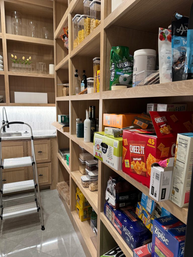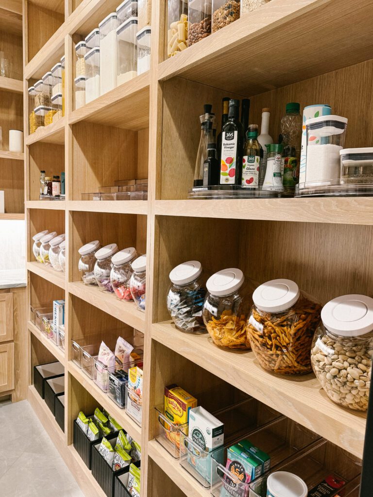 Next, they create designated zones for different foods, placing frequently used items in easy-to-reach places. With a clear idea of the pantry’s contents, they can also purchase additional storage, such as wicker baskets and food canisters, if needed.