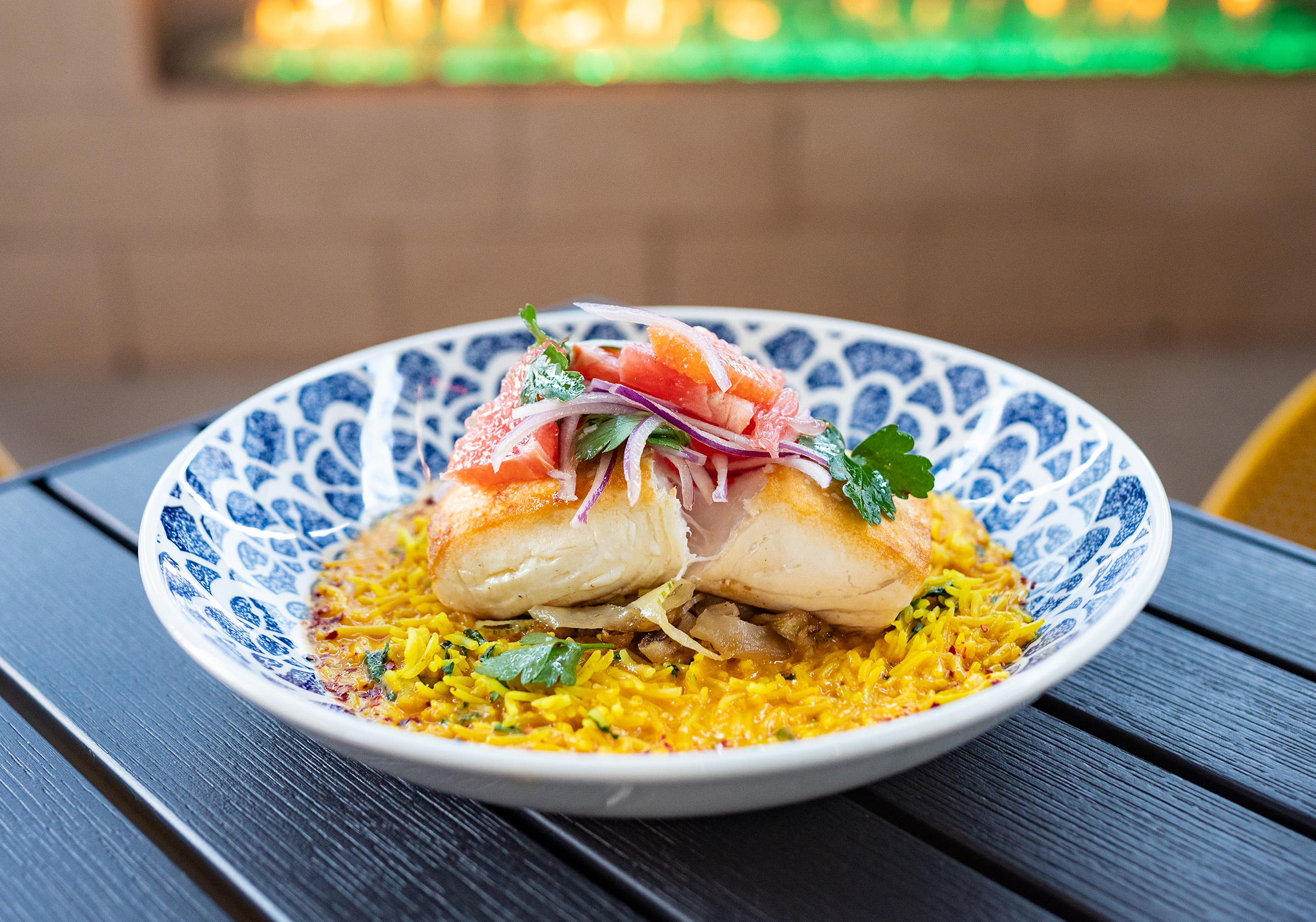 A few of Fox’s tapa options include short rib hummus, ground lamb flatbread, turmeric chicken kebabs and skirt steak shawarma. Desserts include cardamom date cake – replete with toasted walnut, tart cherry whip and butterscotch caramel – and a chocolate tart.
