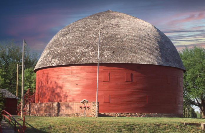 A healthy fear of tornadoes was William Odor’s possible reasoning for constructing the Round Barn in Arcadia. Built in 1898, the barn – and others of the same shape – were commonly believed to be able to withstand cyclones. Others speculate that he adopted the circular shape because it could hold more mules compared to square barns.
