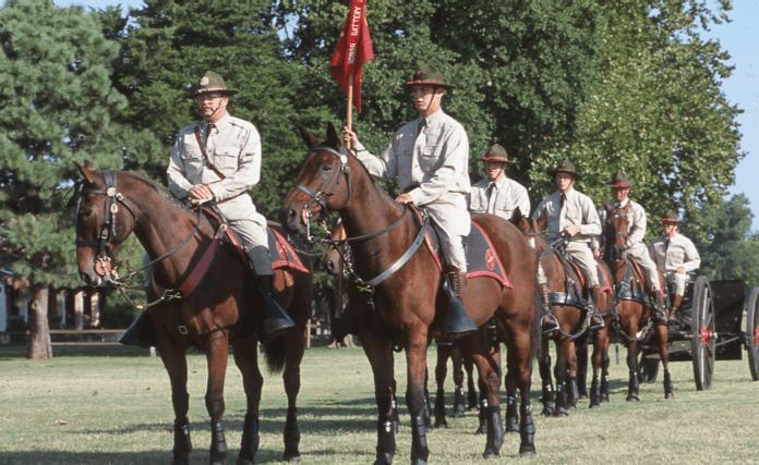“During World War I, more than 50,000 soldiers trained at Fort Sill, and in 1917, the Army Air Service constructed Post Field as a home for army aviation,” says Lance Janda in the Oklahoma Historical Society’s Encyclopedia of Oklahoma History and Culture. “The Infantry School moved to Camp [now Fort] Benning, Georgia, in 1918, but the School for Aerial Observers took its place, and in 1919, the School of Fire became the Field Artillery School.”