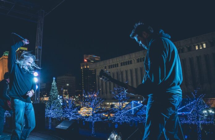 Photo credit: Davit Souders (left) and Andy Callis perform at Tulsa’s Winterfest. Photo by Nick Whittaker